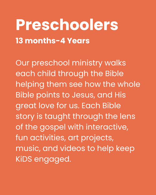 We partner with parents to help KiDS know Jesus personally by providing a fun, creative, and safe environment for them to grow in their faith, embrace their identity as children of God, make life-long friends, and discover the mission God has for them. We value each and every child and are committed to laying the foundation for KiDS to experience God for a lifetime.